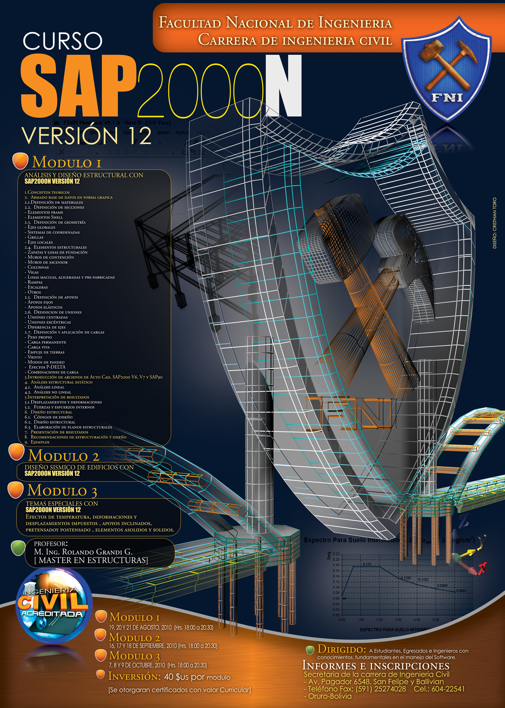 La FACULTAD NACIONAL DE INGENIERÍA de la UNIVERSIDAD TÉCNICA DE ORURO (BOLIVIA) está llevando acabo el curso de Sap2000 V.12, que comprenderá 3 módulos: