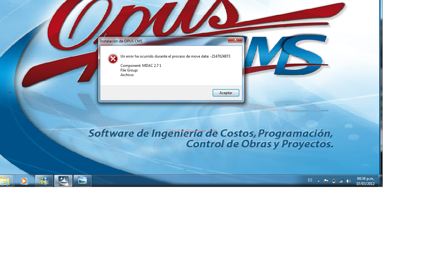 cuando meto el cd y le doy instalar ya que instala todo a lo ultimo me sale la imagen que les voy a adjuntar, espero me puedan ayudar.