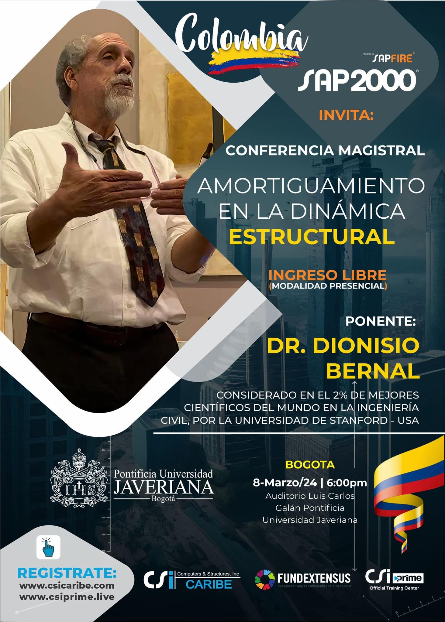 Conferencias Amortiguamiento en la dinámica estructural que serán impartidas por el Dr. Dionisio Bernal en Perú y Colombia en este mes de marzo.