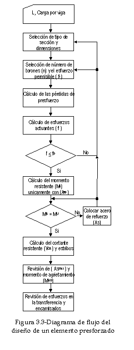 A continuación se muestra un diagrama de flujo que muestra el proceso de diseño de un elemento presforzado: