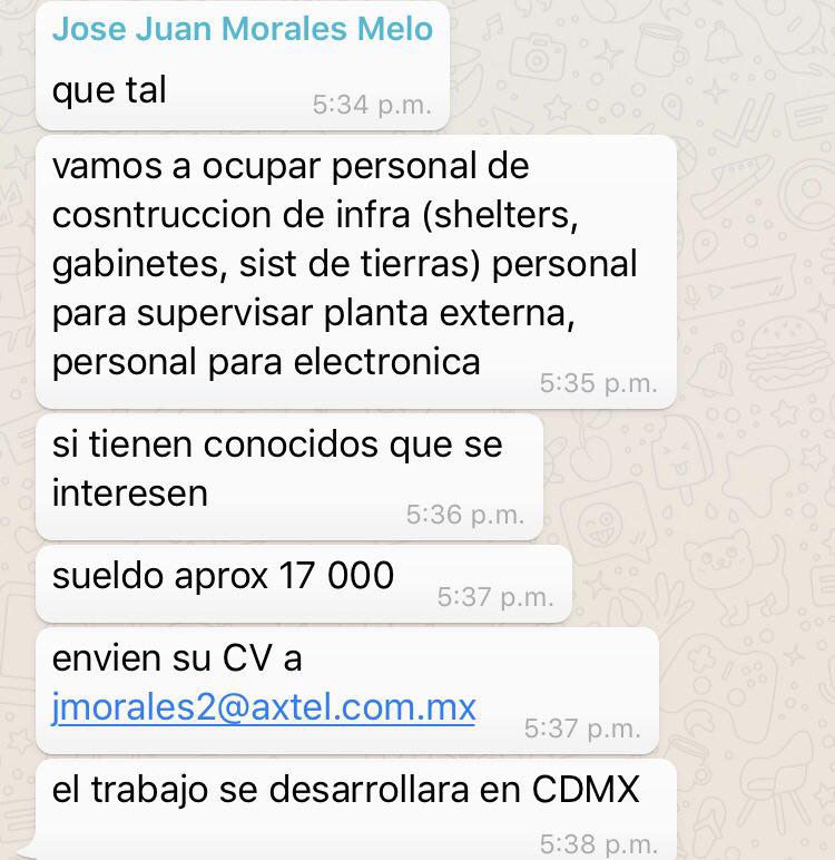 Personal de construcción de Infra (shelters, gabinetes, sistema de tierras), personal para supervisar planta externa, personal para electrónica.