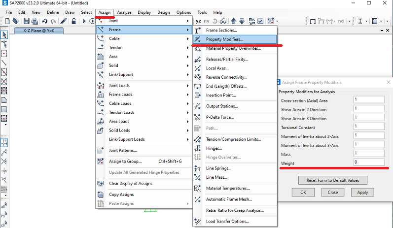 se deberá asignar un modificador en las propiedades del elemento o cable, y ponerle 0 (cero) en el valor de weight.