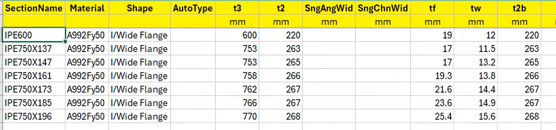En Sap2000 y en ETABS, puedes crear tu propio archivo de datos de propiedades de secciones utilizando el archivo PROPER.XLS, el cual esta disponible bajo solicitud, y lo adjuntamos en este post.